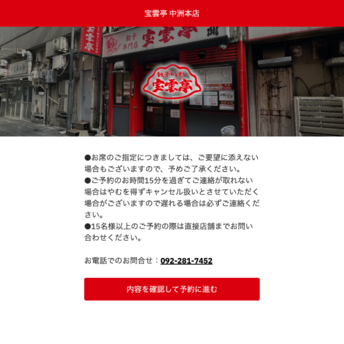 宝雲亭 中洲本店、ご予約受付開始のお知らせ