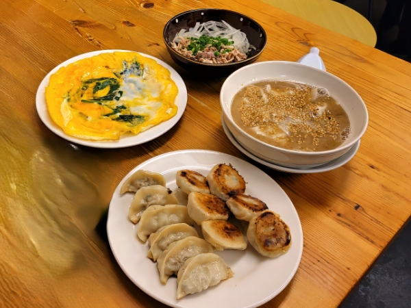 博多一口餃子×6、復刻一口餃子×6、炊き餃子×6、すもつ、にら玉(小)